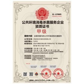 公(gōng)共(gòng)环(huán)境消毒殺菌服務(wù)甲級資質(zhì)證書(shū)