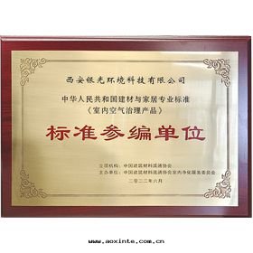 荃芬獲得室(shì)內(nèi)空(kōng)气(qì)治理(lǐ)産品标(biāo)准參編單位(wèi)榮譽